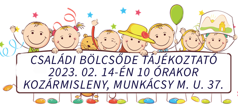 2023. 02. 14-én 10 órai kezdettel tájékoztatót tartunk a Családi Bölcsődébe jelentkezőknek, illetve azokat is nagy szeretettel várjuk, akik még nem jelentkeztek, de szeretnének további információkat megtudni a szolgáltatásról.